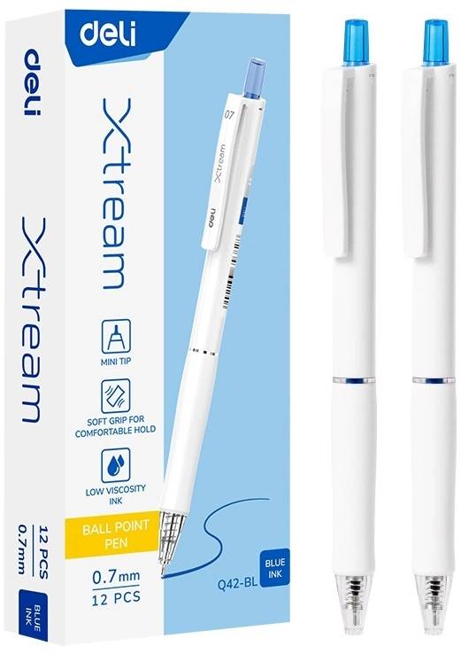 Ручка шариковая DELI Ручка шариков. автоматическая Xtream EQ42-BL белый/белый d=0.7мм син. черн. кругл. резин. манжета