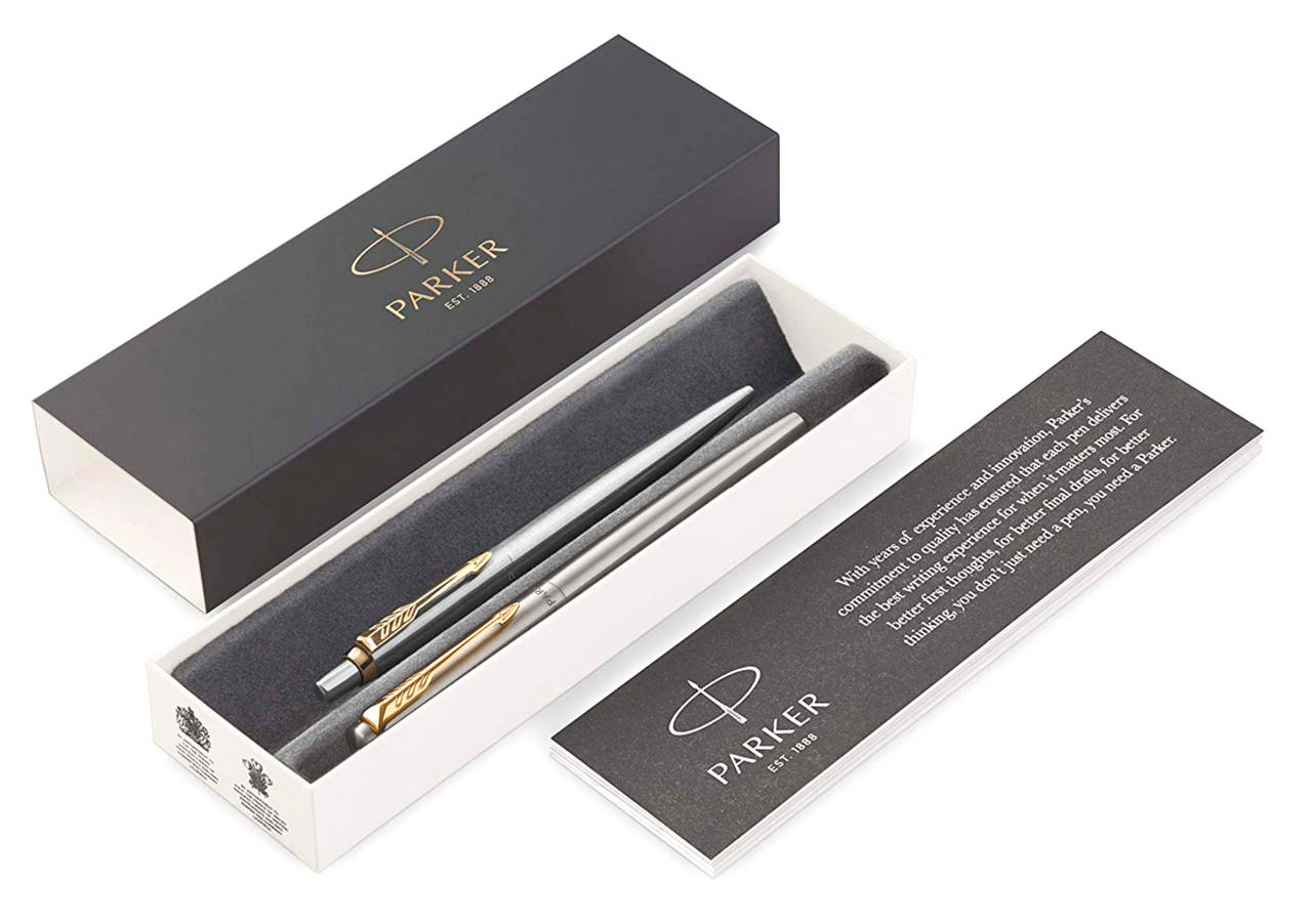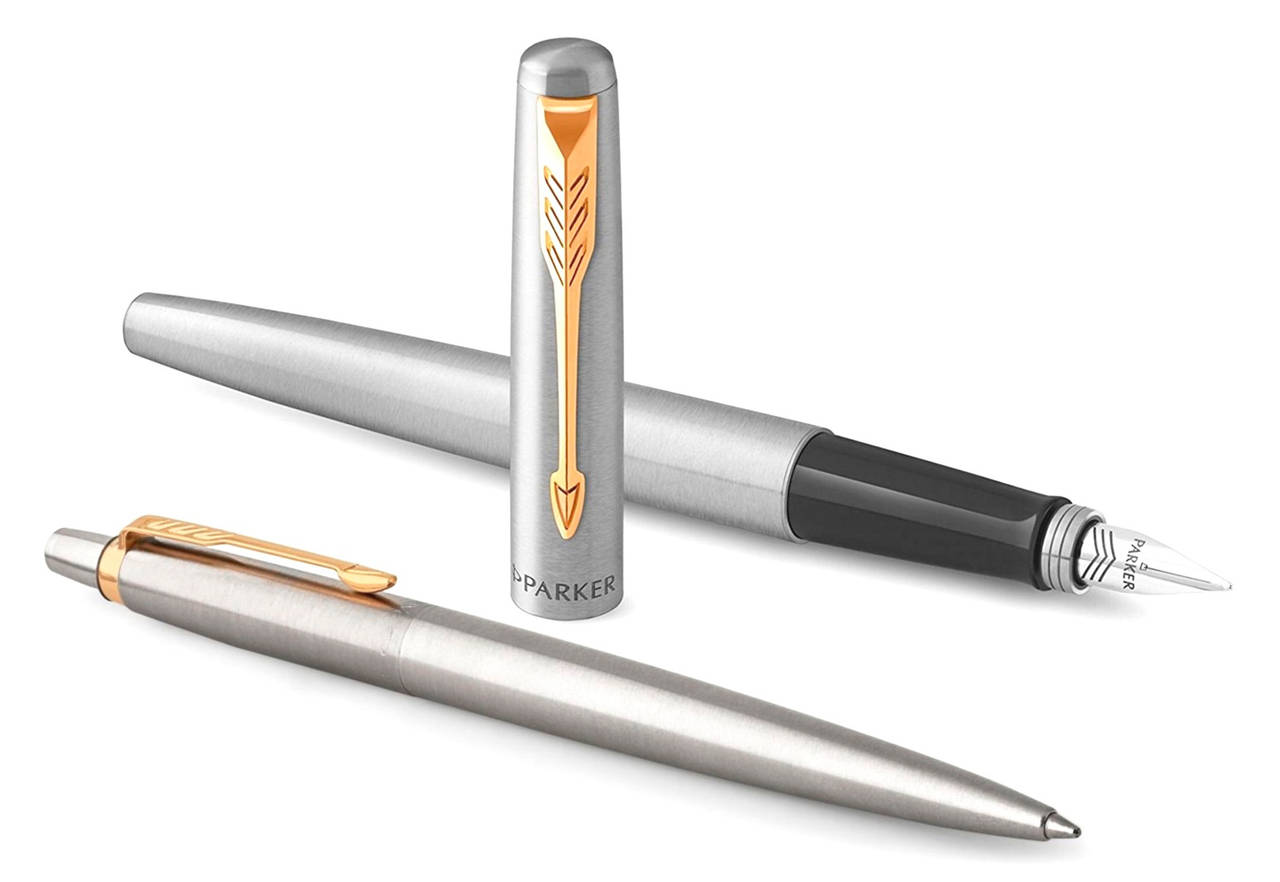 Ручка PARKER Набор ручек Jotter Core FK691 Stainless Steel GT сталь нержавеющая подар.кор. перьевая, шариковая сменный стержень 1стерж. стреловидный пиш. наконечник кругл.
