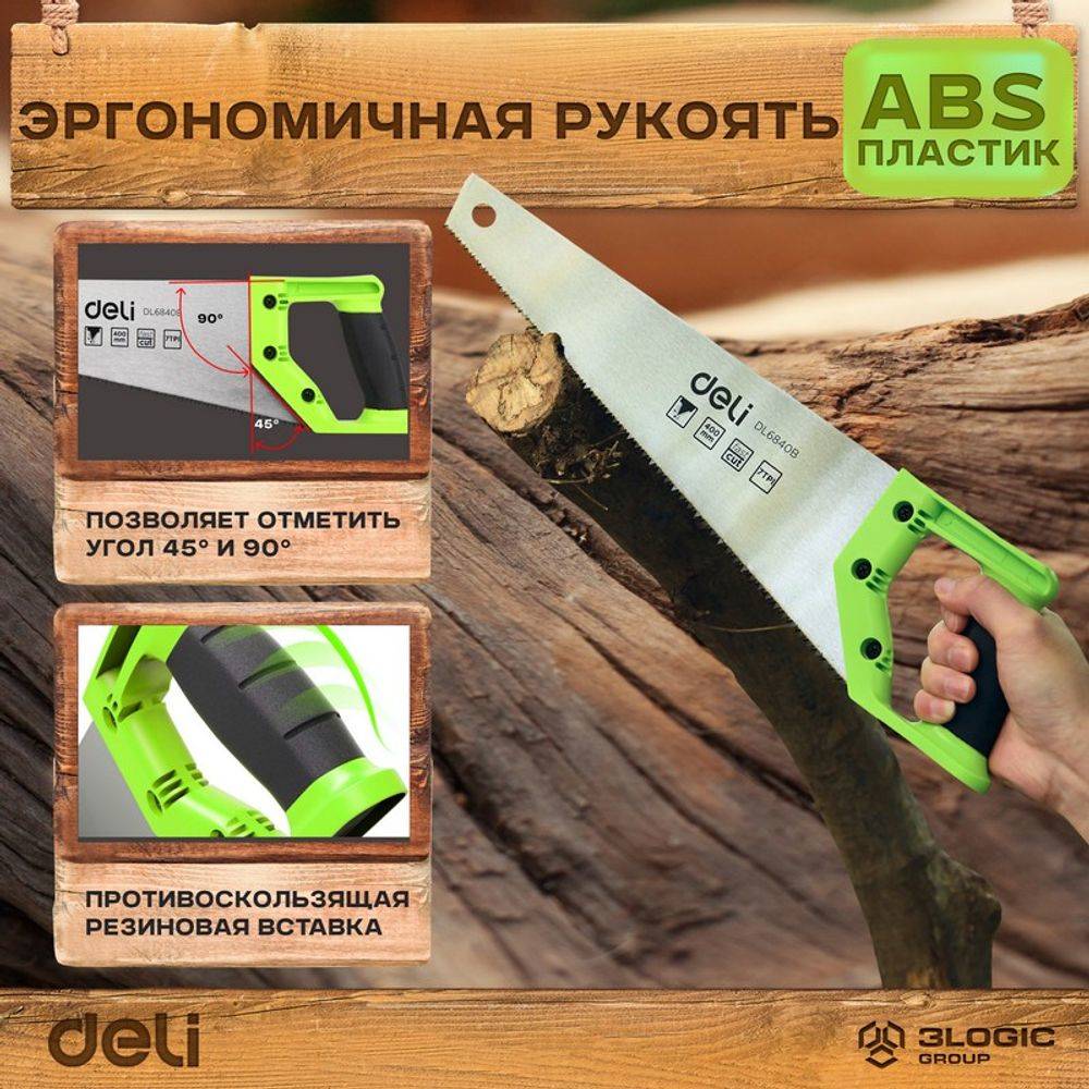 Садовый инструмент DELI Ножовка по дереву DL6840B 400мм, сталь 65Mn, шлифовка зубцов с 3-х сторон, рукоять из двухкомпонентного противоударного пластика
