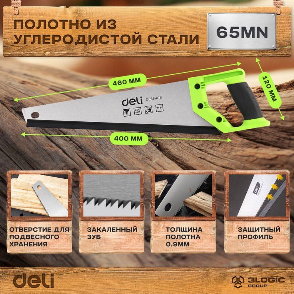 Садовый инструмент DELI Ножовка по дереву DL6840B 400мм, сталь 65Mn, шлифовка зубцов с 3-х сторон, рукоять из двухкомпонентного противоударного пластика2399087-12399087-102399087-112399087-22399087-32399087-42399087-52399087-62399087-72399087-82399087-9