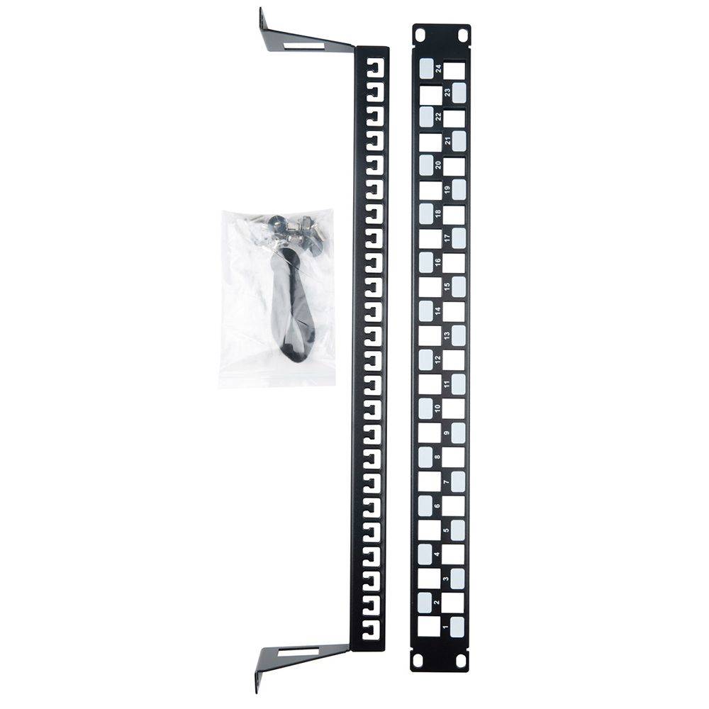 Серверный шкаф HYPERLINE Панель PPBL3-19-24S-RM Модульная патч-панель 19", 24 порта, Flat Type, 1U, для модулей Keystone Jack, с задним кабельным организатором