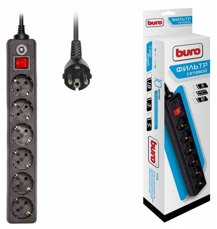 | Описание: | Сетевой фильтр Buro 600SH-5-B 5м (6 розеток) черный |