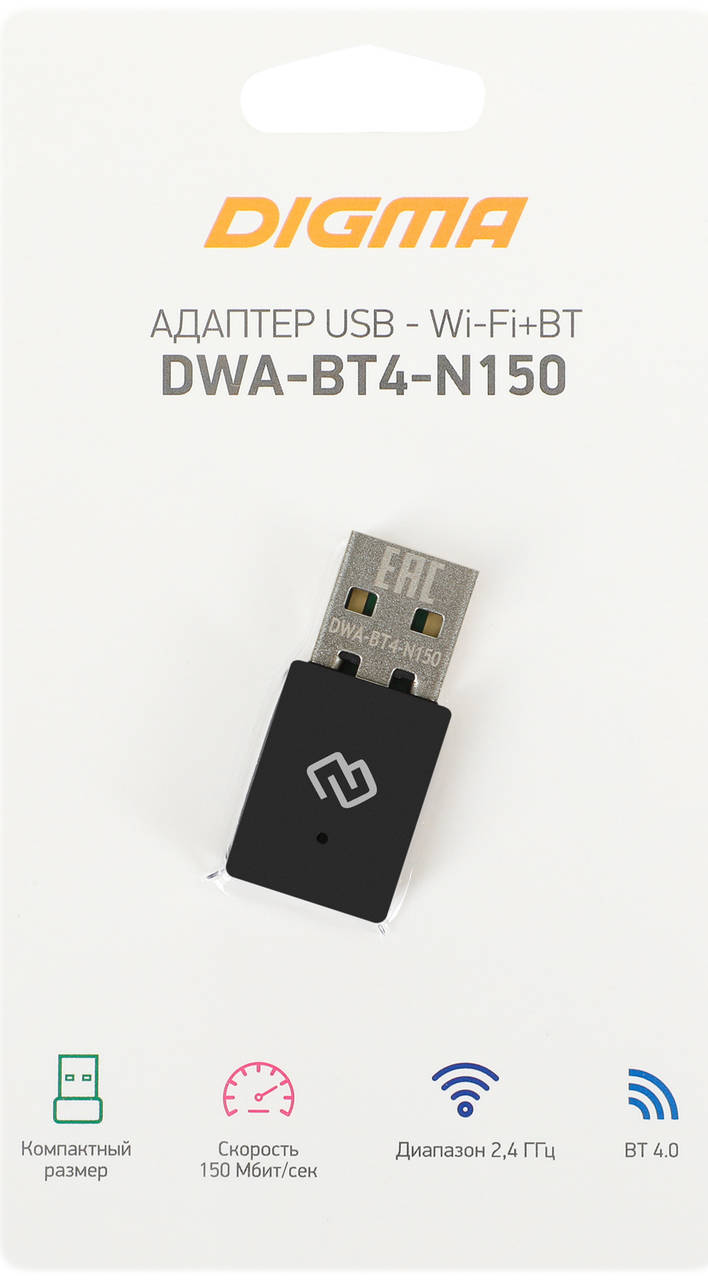Сетевая карта Digma Сетевой адаптер WiFi + Bluetooth DWA-BT4-N150 N150 USB 2.0