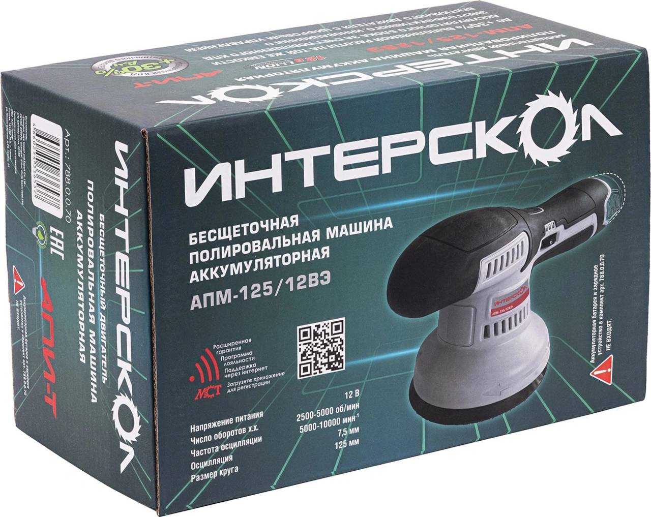 Шлифмашина эксцентриковая Интерскол Полировальная машина АПМ-125/12ВЭ 500Вт D125мм аккум.