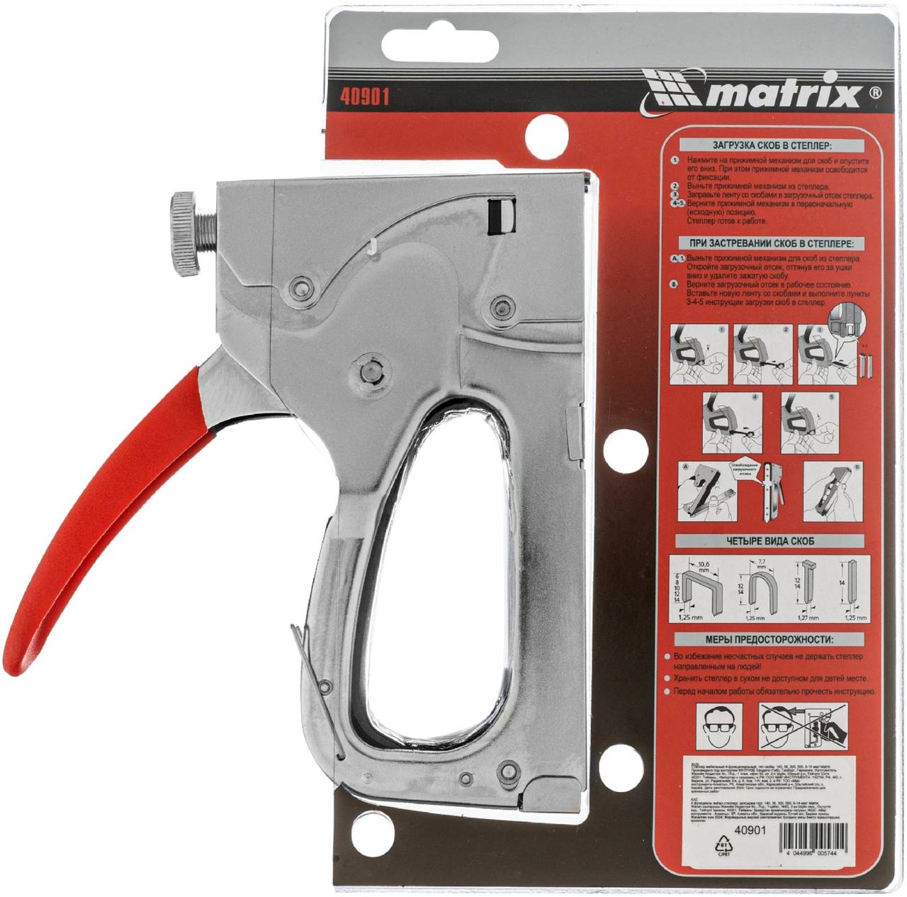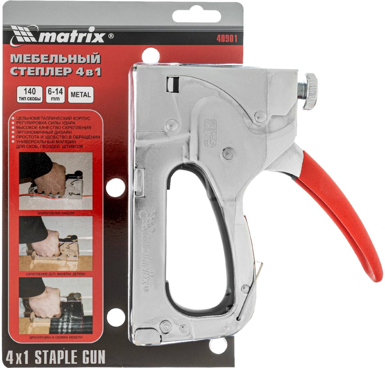 Строительный степлер MATRIX Степлер ручной 40901 скобы тип 140 / 36 гвозди тип 300 / 500