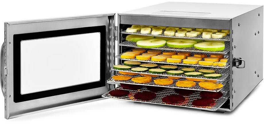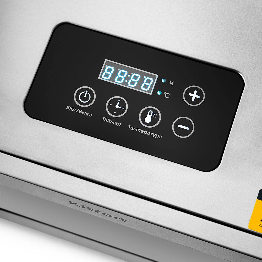Особенности:На сушилке можно установить температуру сушки в диапазоне 30-90 C с шагом 1 C. Прибор также оснащён таймером до 24 часов работы с шагом 30 мин. Выбранные настройки отображаются на LED-дисплее. Их можно менять в процессе сушки, не прерывая работу.