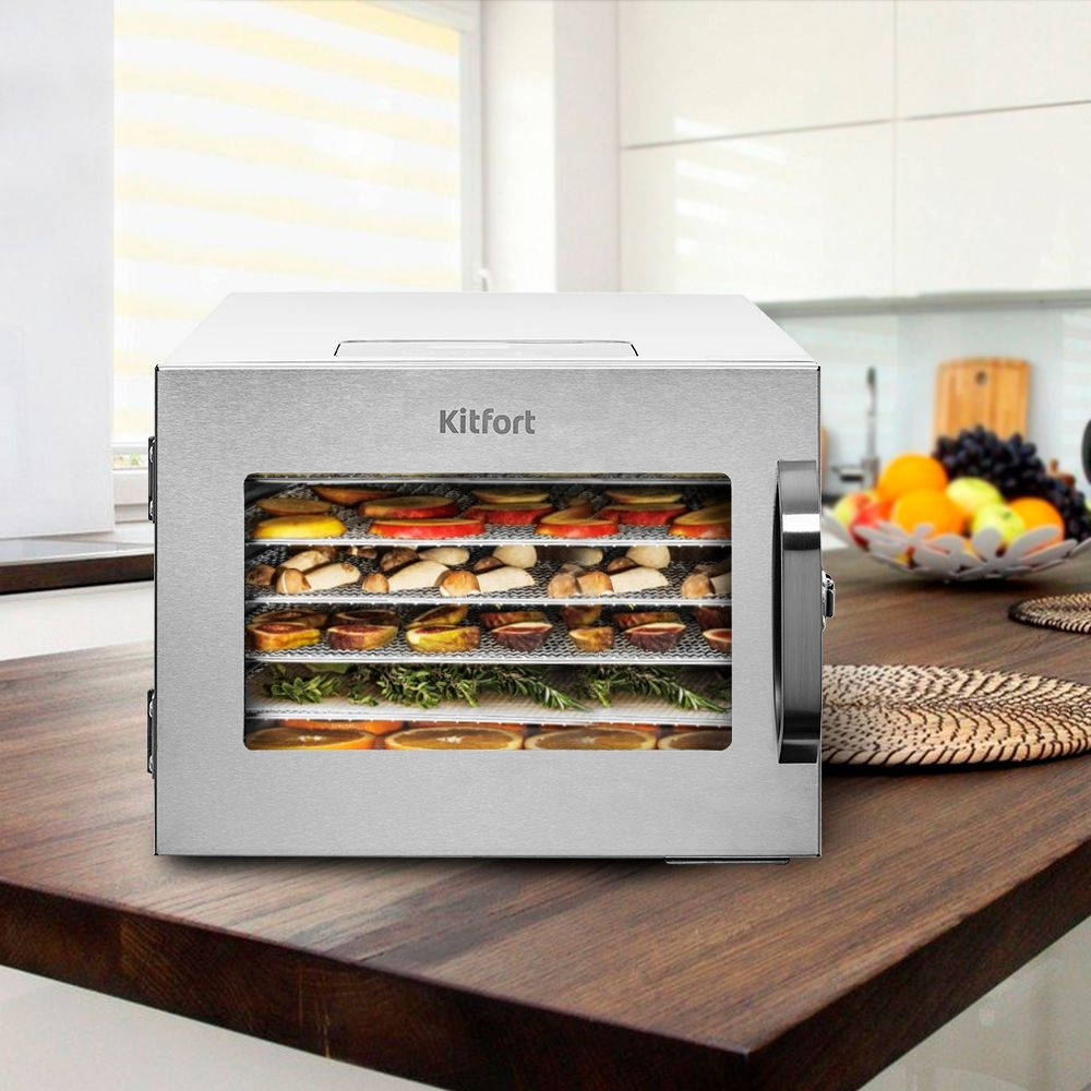 Сушилка для овощей и фруктов KITFORT Сушка для фруктов и овощей KT-1917 6под. 400Вт нержавеющая сталь1645213-11645213-21645213-31645213-41645213-51645213-6