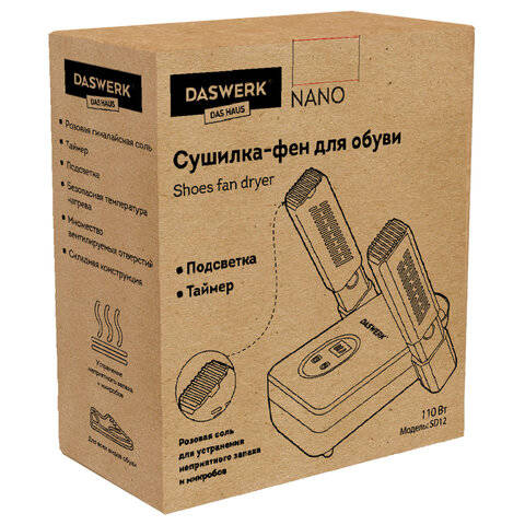 Сушка для обуви DASWERK Сушилка для обуви, варежек, перчаток, складная, с подсветкой и таймером, 110 Вт,  NANO SD12, 456789