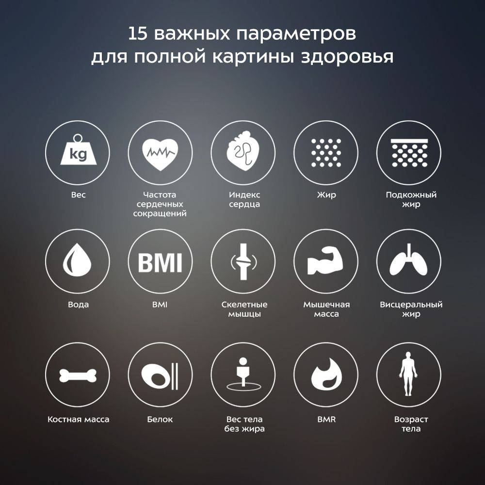 | Описание: | Умные весы обеспечивают высокую точность измерения и станут неизменным спутником для людей, следящих за весом. В течение 5 секунд после взвешивания в приложении отразятся важнейшие параметры тела: вес, возраст тела, содержание воды, белка, жира и костной массы в организме, общий баланс тела и другие |