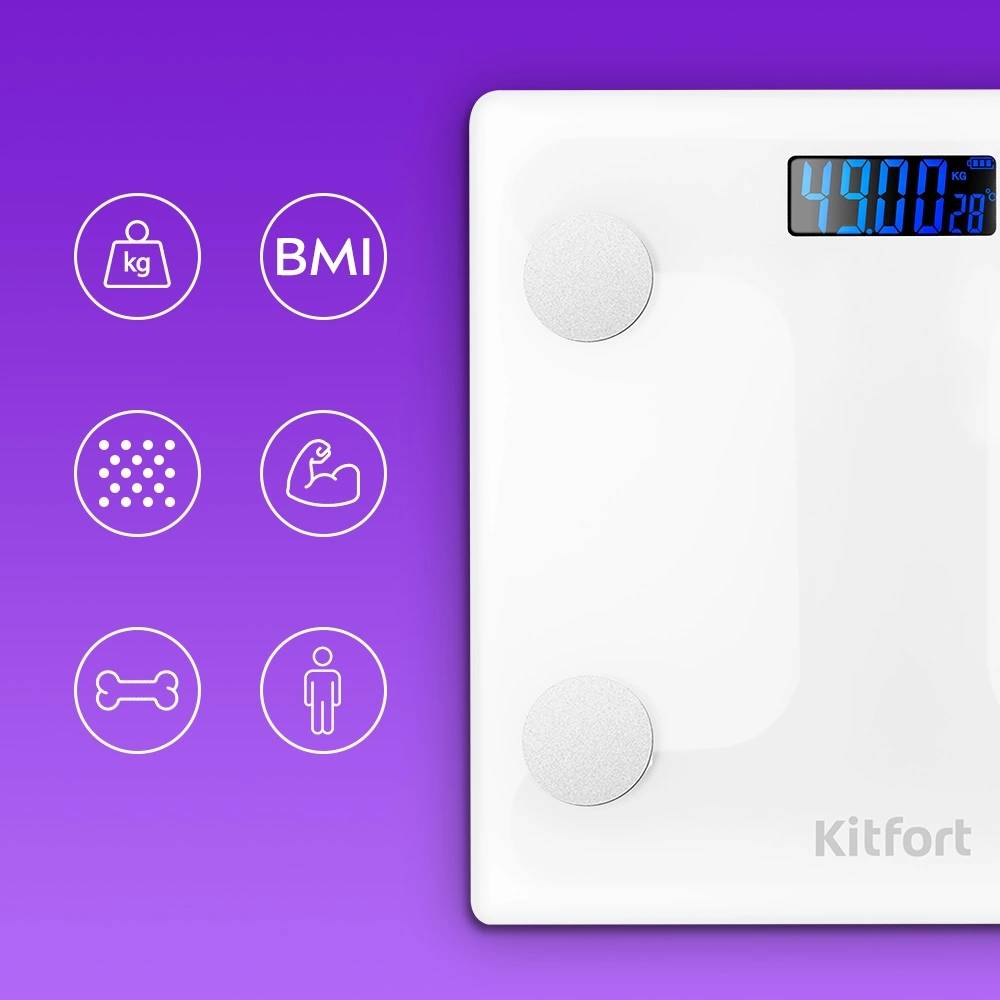 Весы KITFORT напольные электронные КТ-845 макс.180кг белый