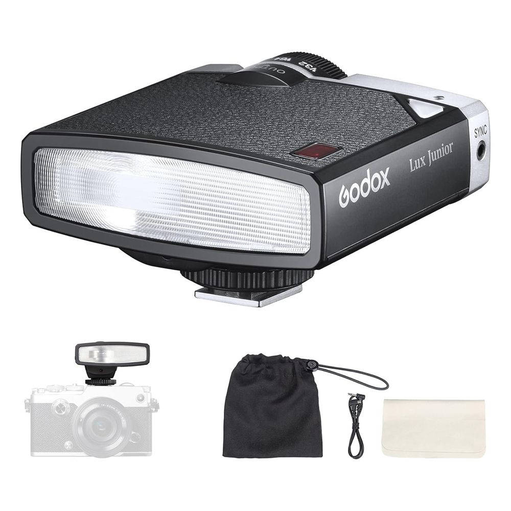 Накамерная вспышка Godox LUX Junior – компактный источник импульсного света в винтажном стиле с самыми необходимыми базовыми функциями. Ретровспышка Godox LUX Junior совместима с камерами FUJIFILM, Canon, Nikon, Olympus, Sony и другими. Устройство поставляется совместно с синхрокабелелем – для срабатывания от фотокамеры, не имеющей «горячий башмак».
