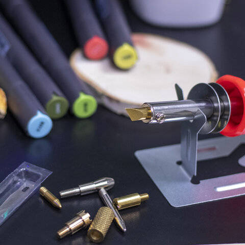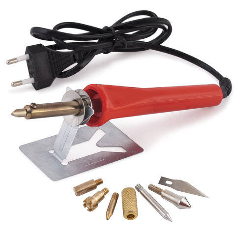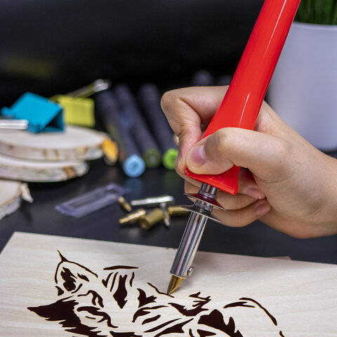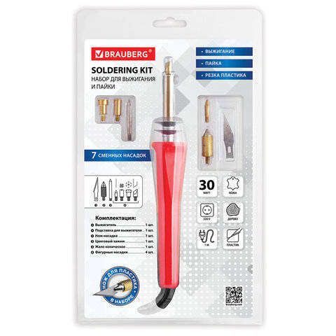 Набор для выжигания Brauberg и пайки BRAUBERG, 6 насадок + нож для резки пластика, красный, 150621